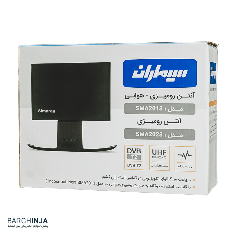 آنتن اکتیو SMA-2013آنتن اکتیو SMA-2013 سیماران با تقویت سیگنال ۲۰ تا ۲۵ دسیبل و نویز پایین، گزینهای عالی برای مناطقی است که کیفیت دریافت شبکههای دیجیتال ضعیف است. این آنتن با منبع تغذیه ۱۲ ولت و ۲۲۰ ولت کار میکند و امکان اتصال همزمان دو دستگاه گیرنده را فراهم میسازد.
