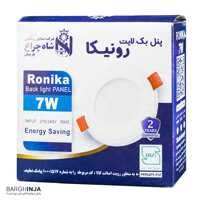 پنل توکار رونیکا 7 واتپنل توکار ۷ وات رونیکا برند شاهچراغ پارسیان— یه چراغ ظریف و کارآمد که نور یکنواخت و ملایم میده، مناسب سقفهایی که میخوای ظاهر تمیز و بدون برجستگی داشته باشی.
